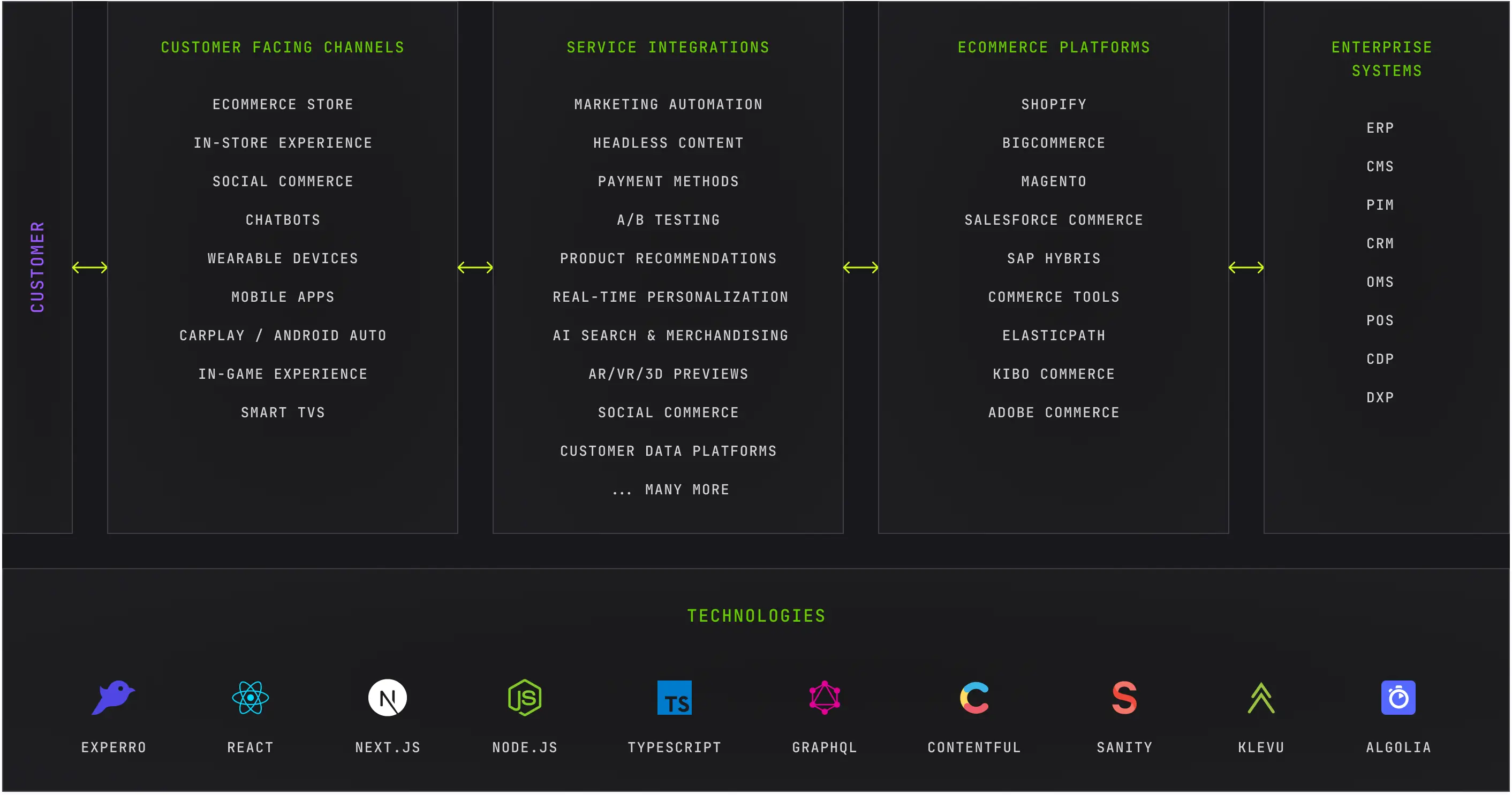 1Center’s headless eCommerce accelerator is a proven framework that is used by dozens of successful enterprises. It brings best-of-the-breed platforms, technologies, frameworks, and industry best practices in one read-to-use package.